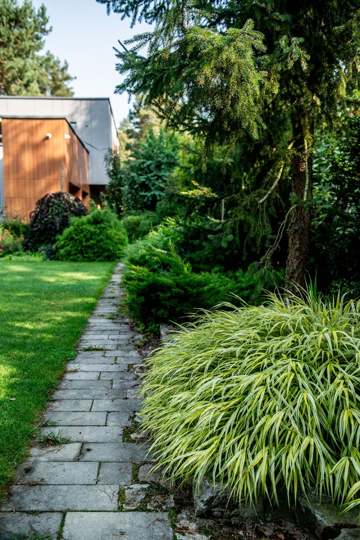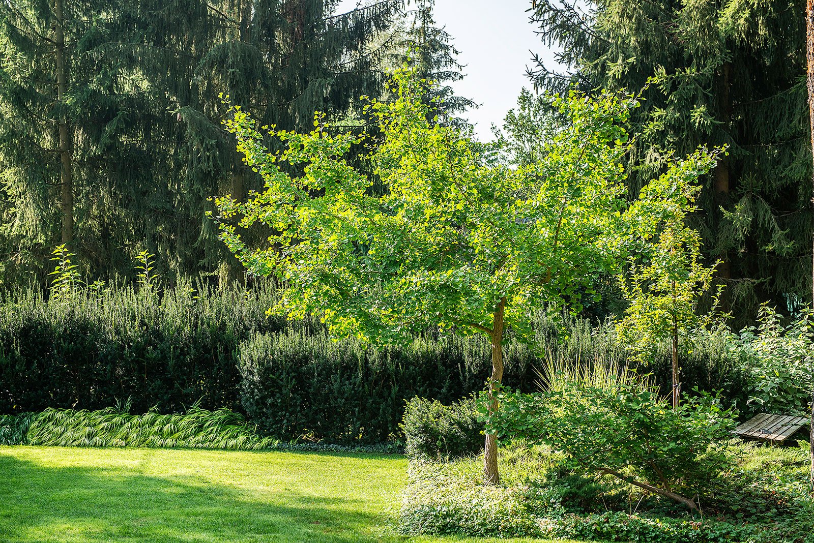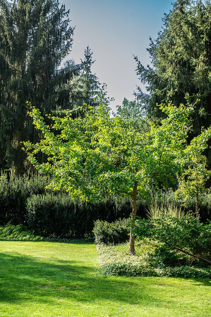 W miejscu nasadzeń wyregulowaliśmy wyrastającą roślinność. W miejscach pustych przestrzeni postawiono kamienne donice nawiązujące i utrzymujące spójność z bryłą i dziedzińcem budynku. W zależności od stopnia naświetlenia dziedzińca wprowadziliśmy zróżnicowaną roślinność, która z jednej strony nie wymagała dużej ilości światła, a z drugiej byłaby odporna na panujący w korytarzu dziedzińca przeciąg i mocne nasłonecznienie w okresie letnim. W holu galerii budynku na ścianie wschodniej wstawnione zostały donice z nasadzonymi niskopiennymi drzewami.