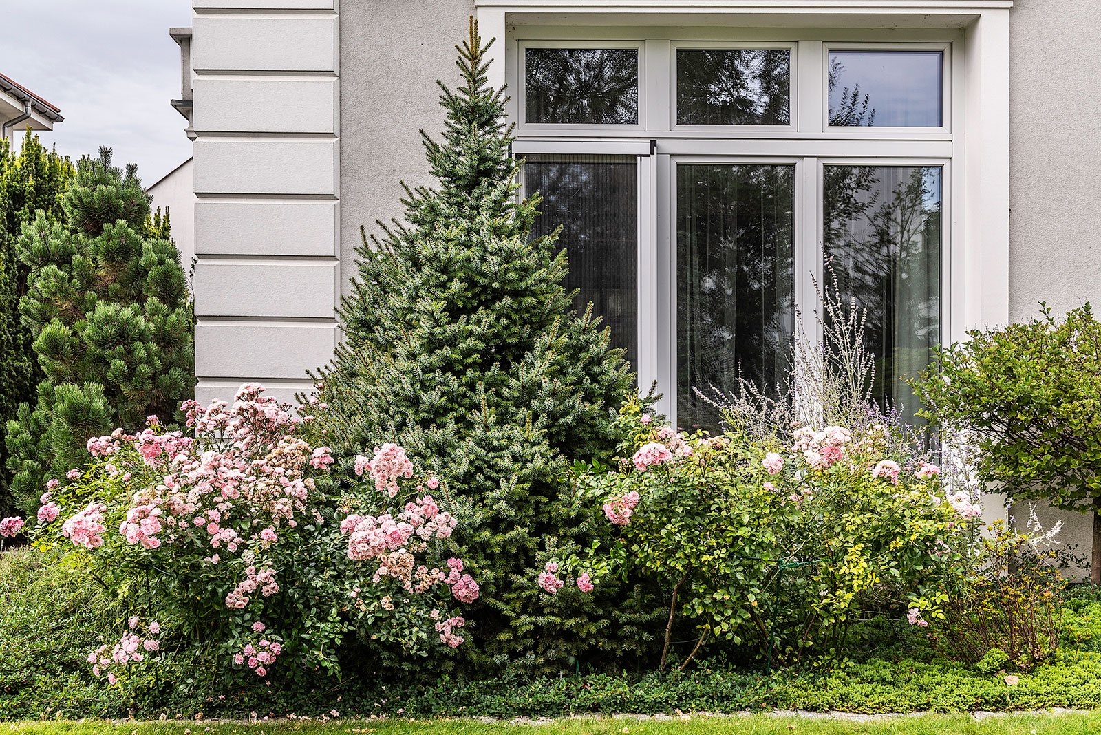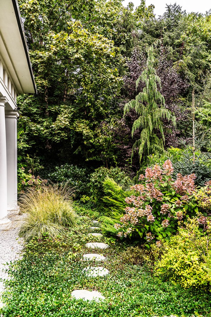 W miejscu nasadzeń wyregulowaliśmy wyrastającą roślinność. W miejscach pustych przestrzeni postawiono kamienne donice nawiązujące i utrzymujące spójność z bryłą i dziedzińcem budynku. W zależności od stopnia naświetlenia dziedzińca wprowadziliśmy zróżnicowaną roślinność, która z jednej strony nie wymagała dużej ilości światła, a z drugiej byłaby odporna na panujący w korytarzu dziedzińca przeciąg i mocne nasłonecznienie w okresie letnim. W holu galerii budynku na ścianie wschodniej wstawnione zostały donice z nasadzonymi niskopiennymi drzewami.