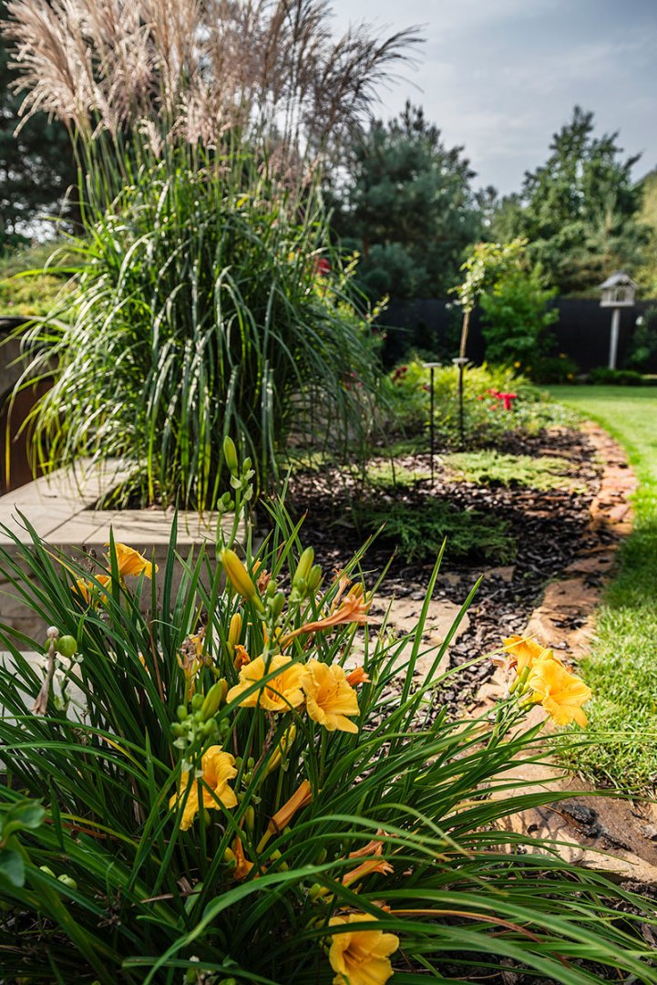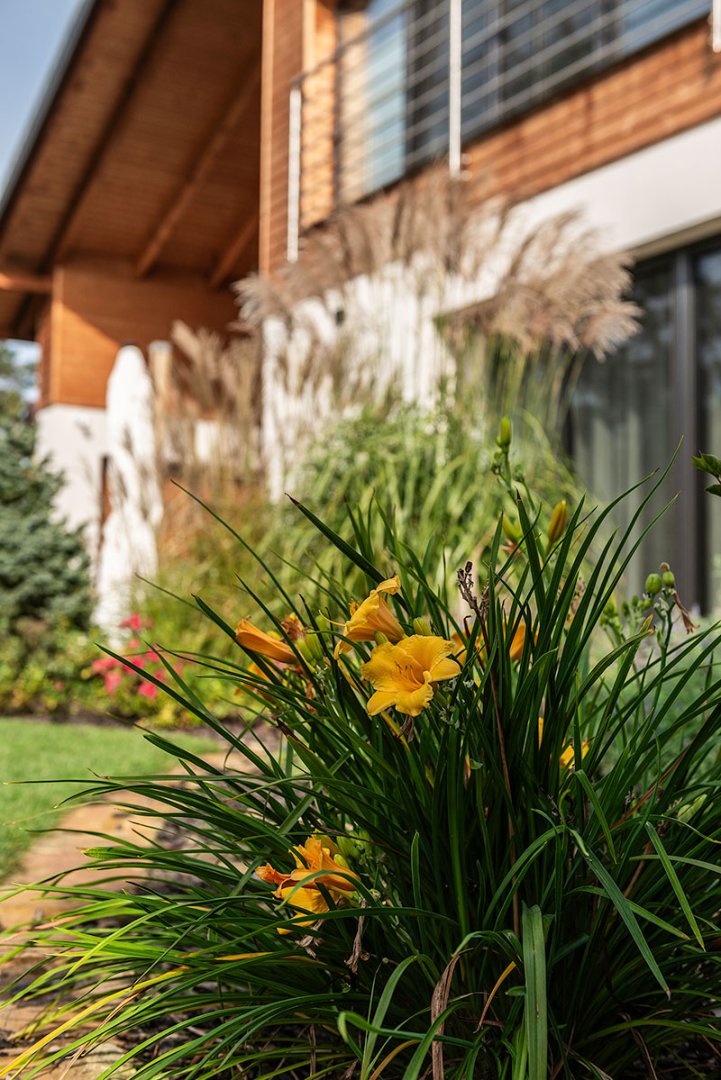 W miejscu nasadzeń wyregulowaliśmy wyrastającą roślinność. W miejscach pustych przestrzeni postawiono kamienne donice nawiązujące i utrzymujące spójność z bryłą i dziedzińcem budynku. W zależności od stopnia naświetlenia dziedzińca wprowadziliśmy zróżnicowaną roślinność, która z jednej strony nie wymagała dużej ilości światła, a z drugiej byłaby odporna na panujący w korytarzu dziedzińca przeciąg i mocne nasłonecznienie w okresie letnim. W holu galerii budynku na ścianie wschodniej wstawnione zostały donice z nasadzonymi niskopiennymi drzewami.