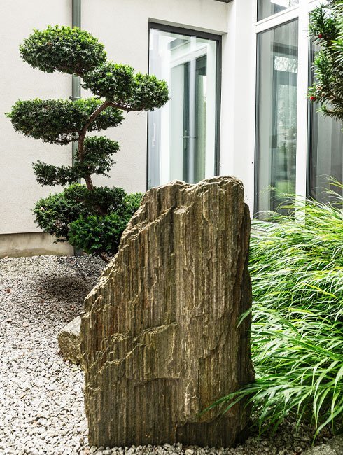W zależności od przeznaczenia przestrzeni wykorzystujemy elementy dekoracyjne, podkreślające charakter miejsca, współgrające z projektem zieleni.